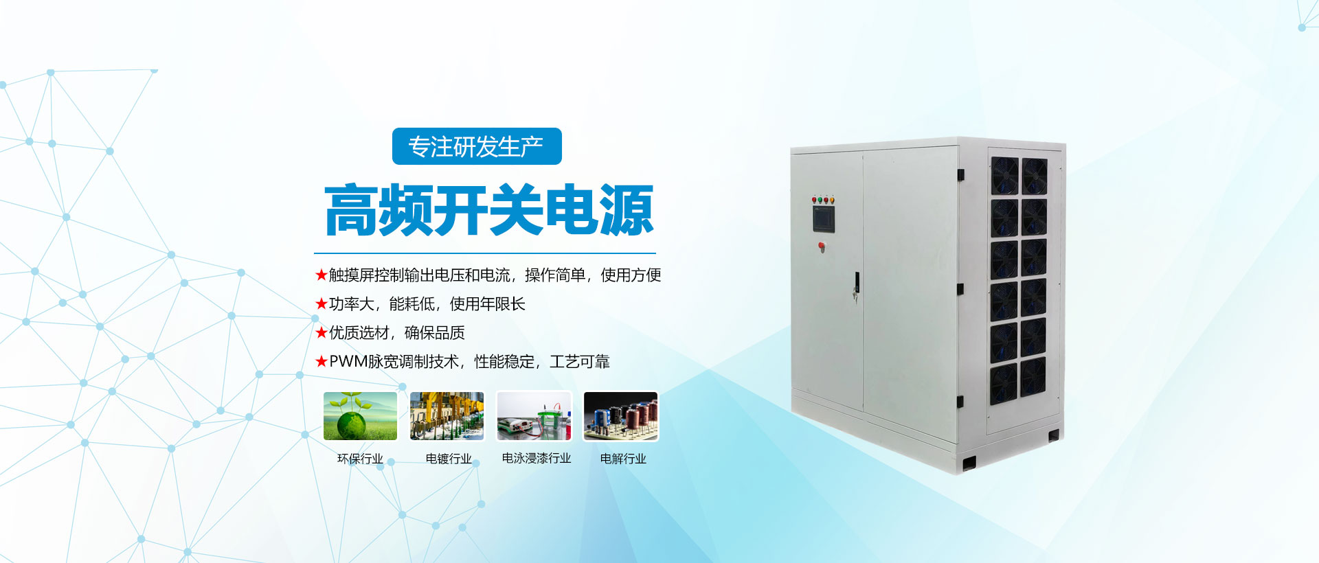 欧美99久久无码一区人妻A片是一家专业从事大功率开关电源的设计、研发、生产和销售的科技型企业,成立于2001年,拥有二十多年的行业经验和技术积累,产品质量在全国同行业中名列前茅,2005年通过了ISO9001:2000国际质量管理体系认证。我们的产品涵盖了高频开关电源、整流器、智能型充放电机、感应调压器、开关柜、电子机箱等多个品类,以及各种特种电源,如水处理电源、电渗析电源、电絮凝电源、金属电镀电源、···